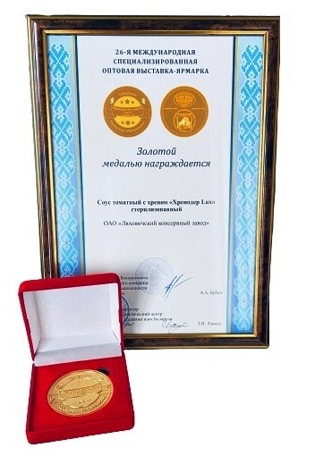 ОАО «Ляховичский консервный завод» с радостью сообщает, что стал обладателем Золотой Медали за томатный соус с хреном “Xrenoder Lux” на 26-й международной специализированной оптовой выставке-ярмарке!